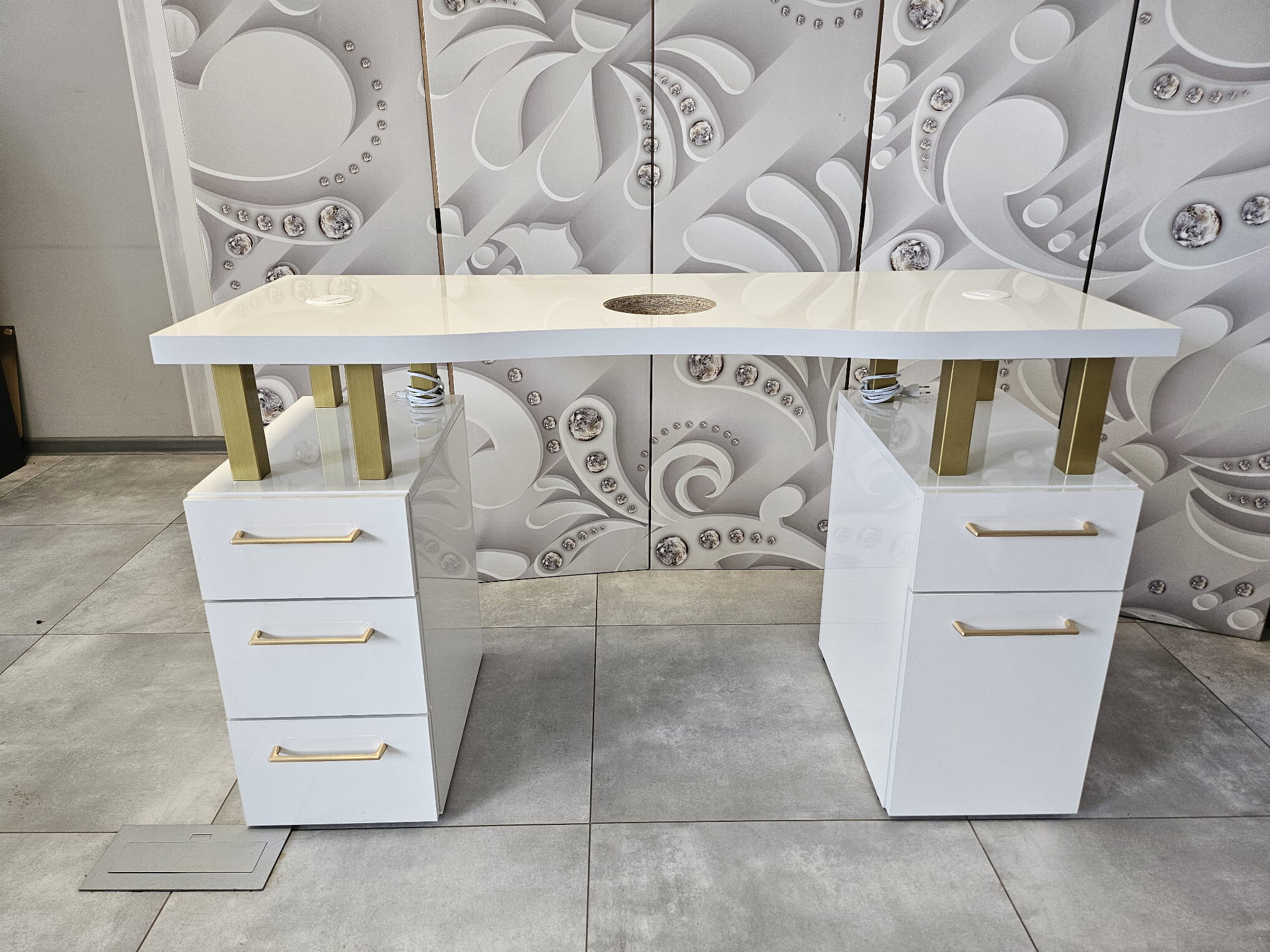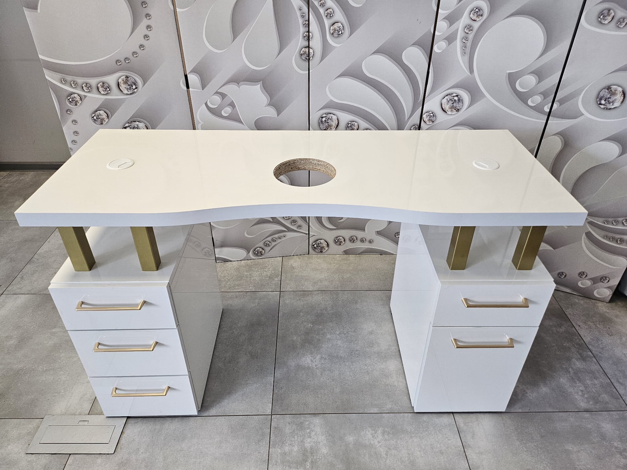 Biurko do manicure z otworem na pochłaniacz i gniazdkami