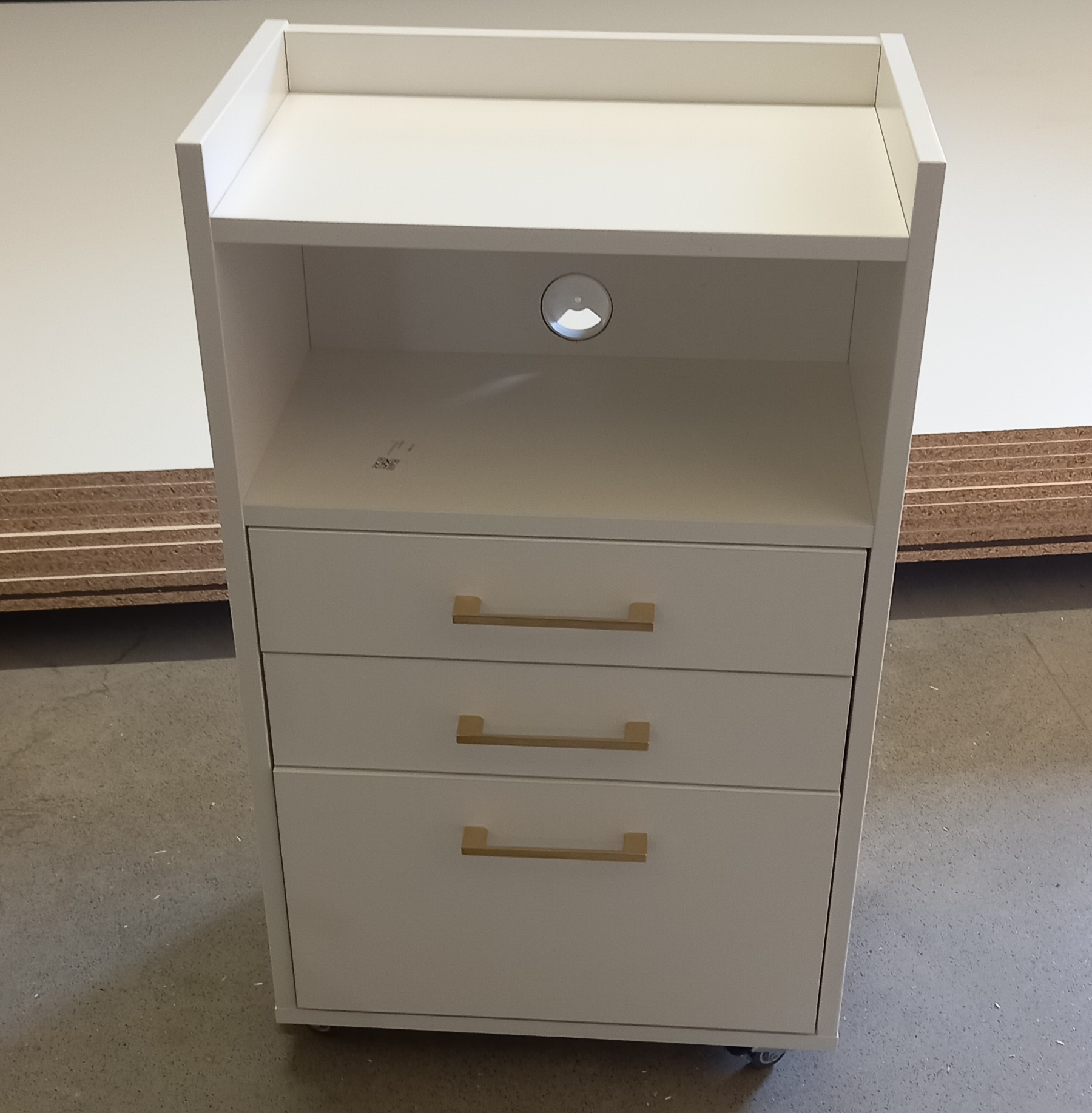 Mobilny kontener kosmetyczny z półką i szufladami