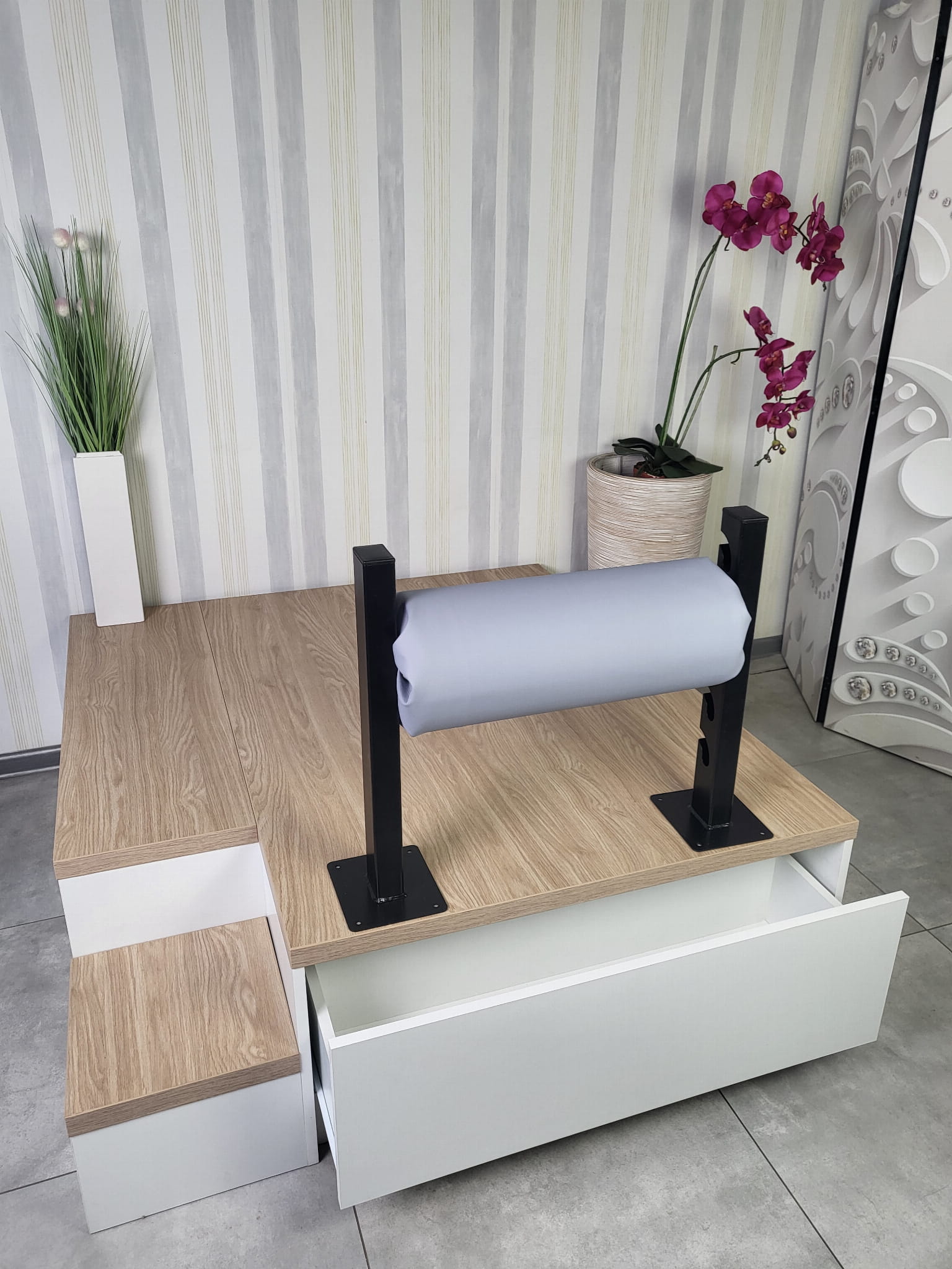 Funkcjonalny i estetyczny podest do pedicure z praktyczną szufladą i bocznymi schodkami to idealne rozwiązanie dla salonów kosmetycznych, gabinetów podologicznych i SPA, które cenią sobie komfort pracy, porządek i nowoczesny design.