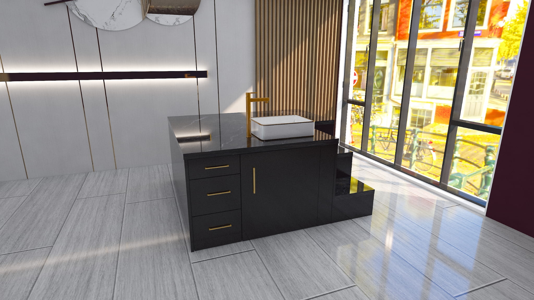 Czarny marmur blat - czarna podstawa